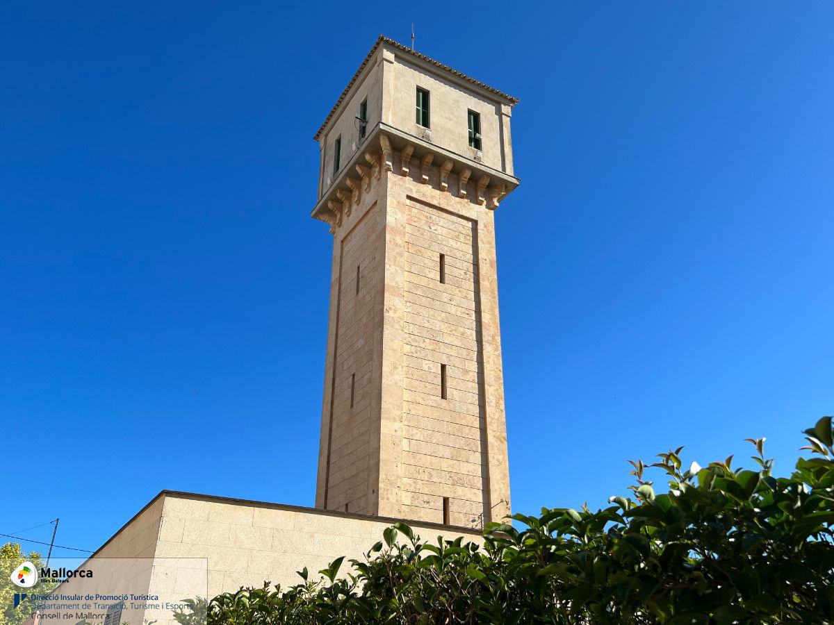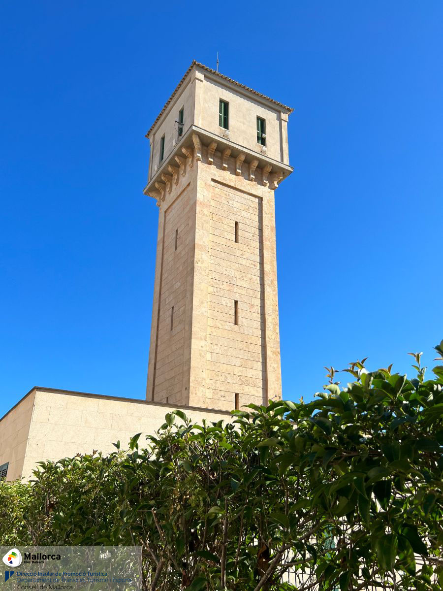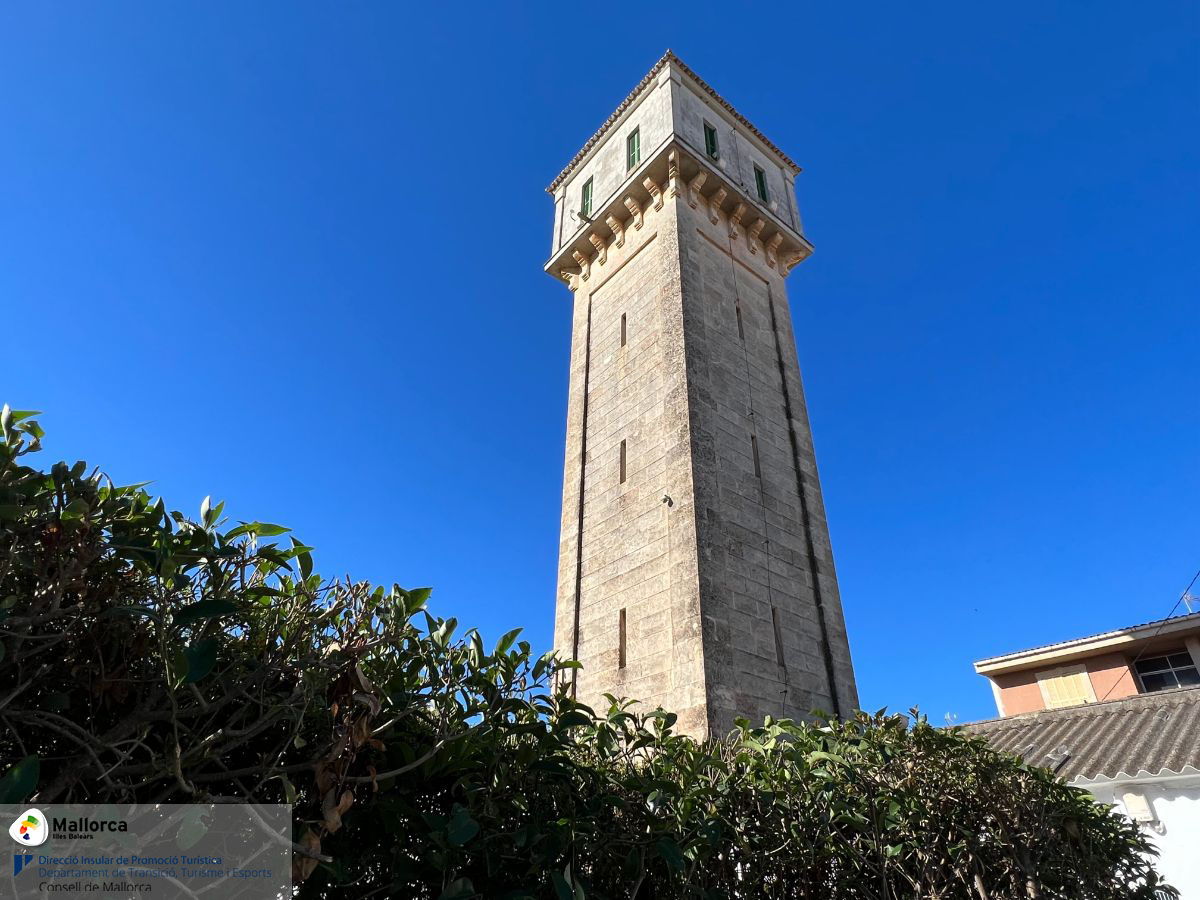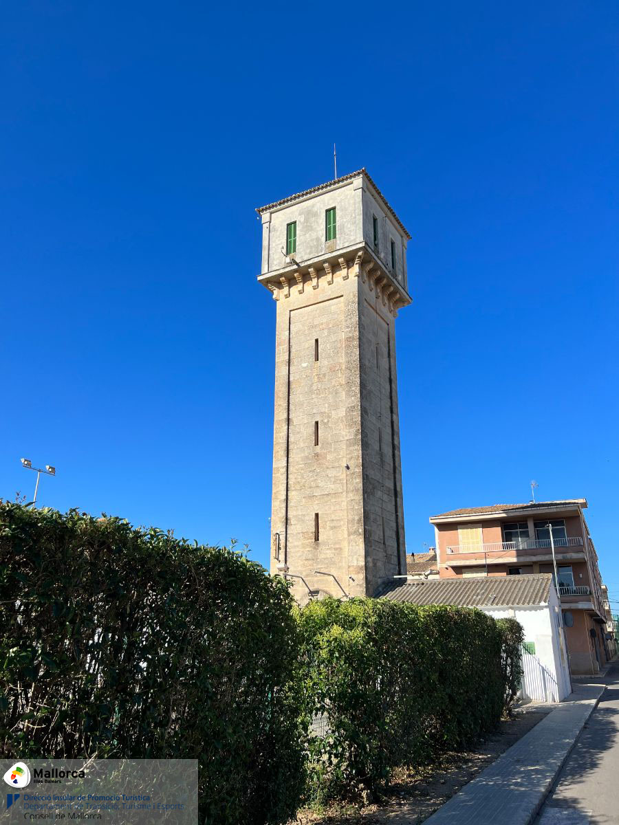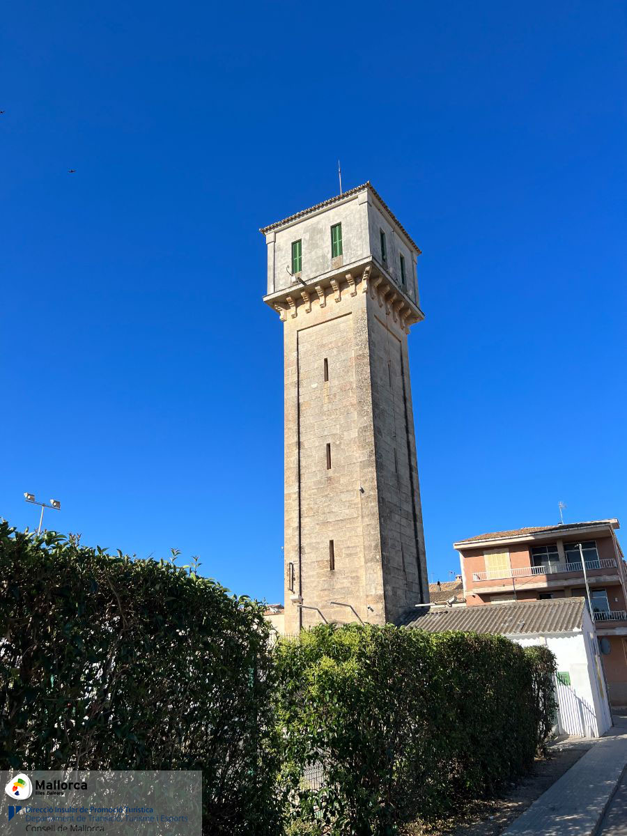 Torre de regulació de la pressió de la xarxa d’aigua potable, construïda amb marès, el 1935. De 25 metres d’altura, es va aixecar al costat d’un pou de 25 metres de profunditat, perforat a mà. La memòria i els plànols de realització de la torre estan signats per l’arquitecte Francesc Casas. La planta quadrada, tant de la torre com del dipòsit, i els elements ornamentals de caràcter classicista, tenen la intenció d’emmascarar l’ús de l’edificació. Va ser restaurada el 1997.