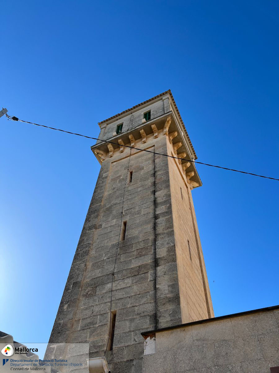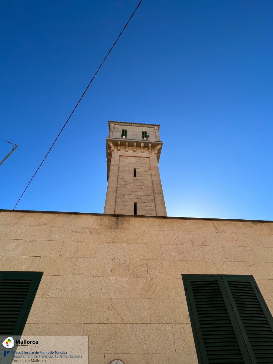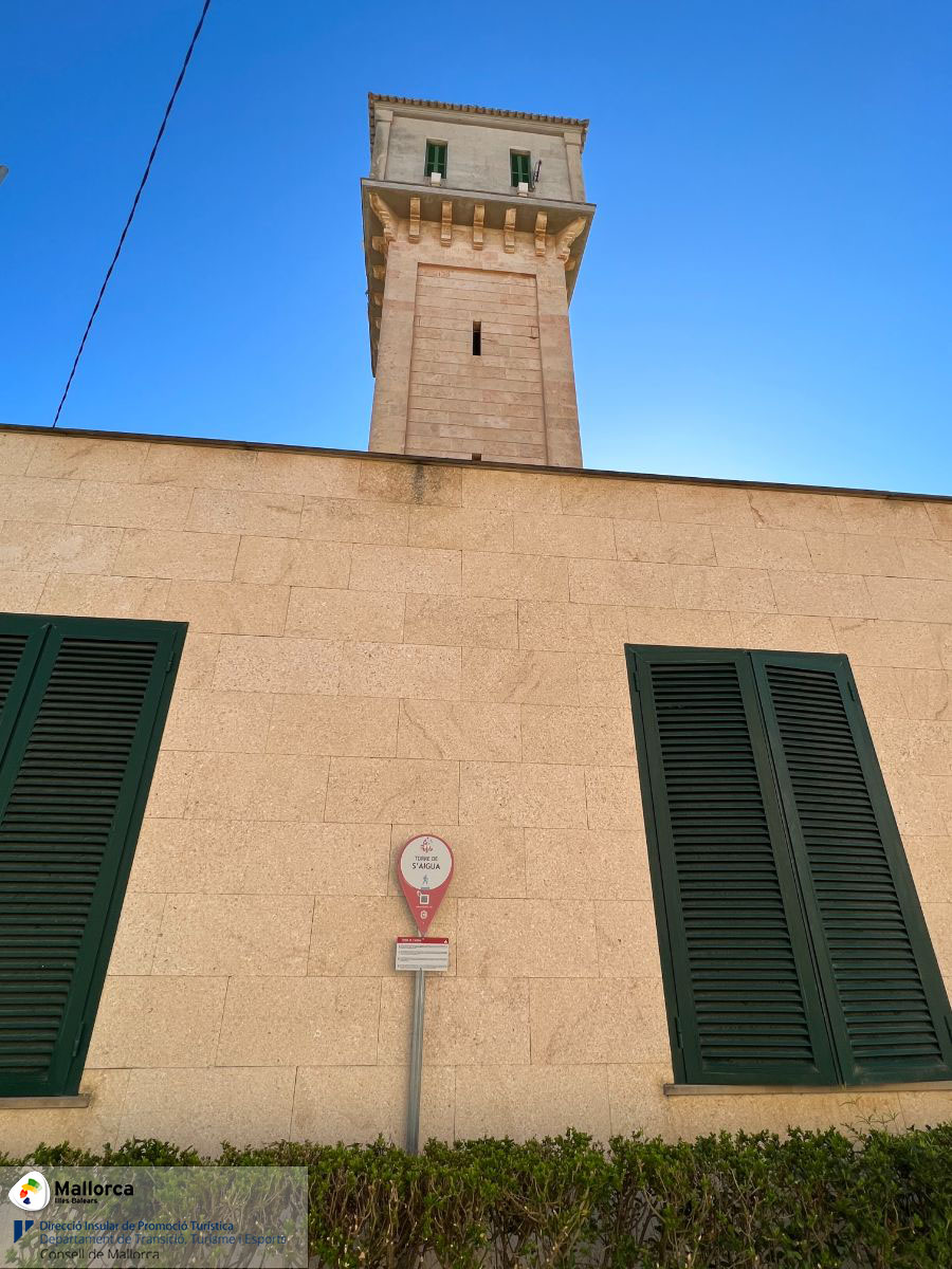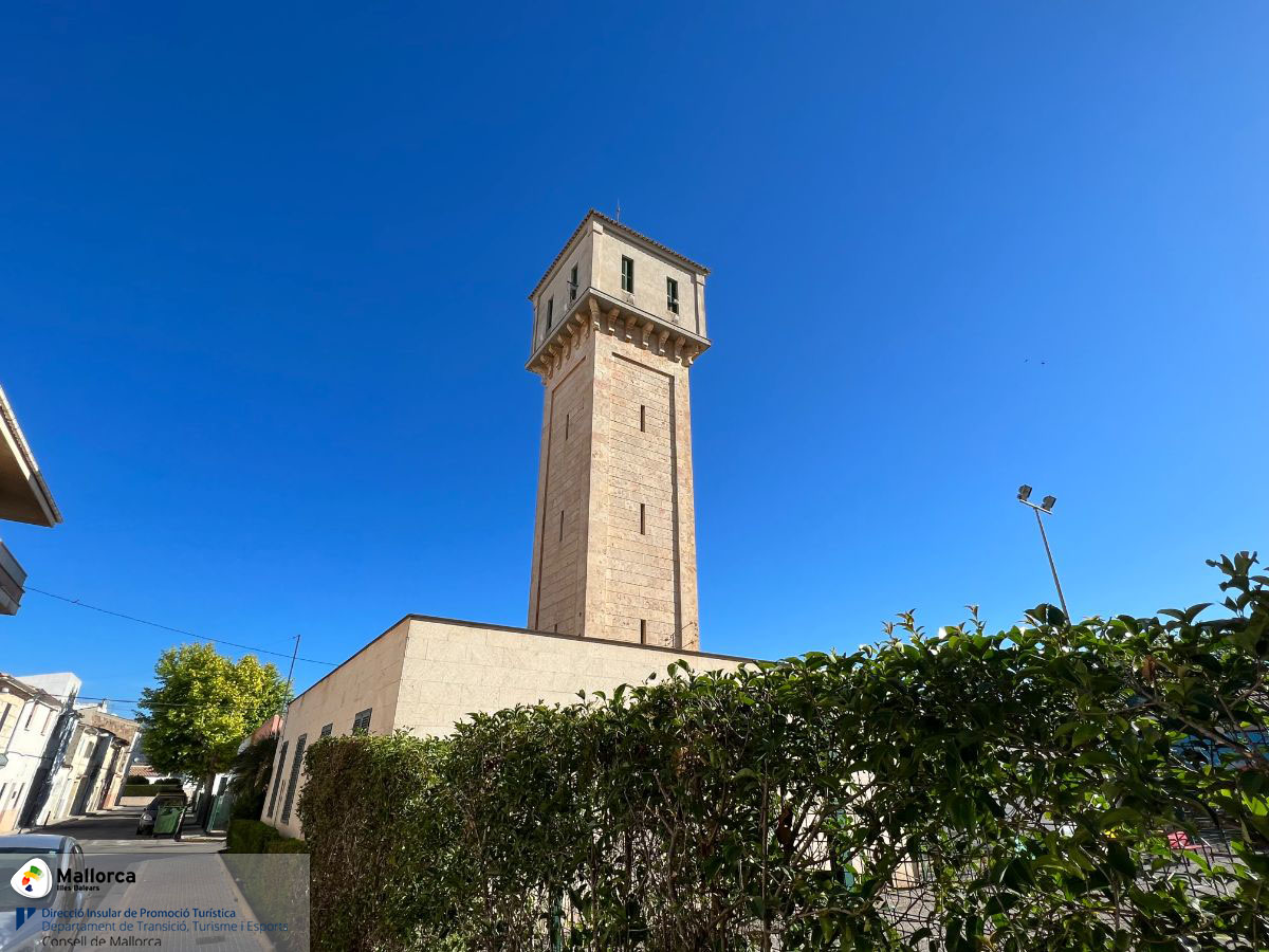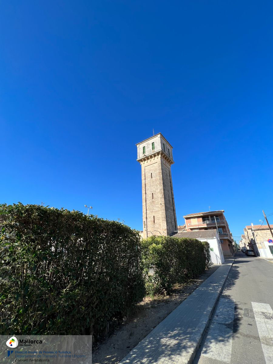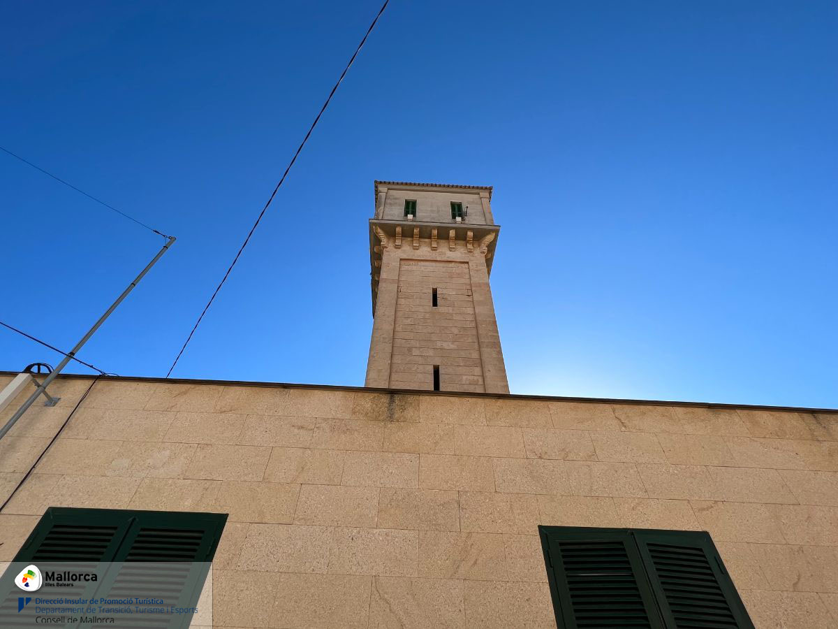 Torre de regulació de la pressió de la xarxa d’aigua potable, construïda amb marès, el 1935. De 25 metres d’altura, es va aixecar al costat d’un pou de 25 metres de profunditat, perforat a mà. La memòria i els plànols de realització de la torre estan signats per l’arquitecte Francesc Casas. La planta quadrada, tant de la torre com del dipòsit, i els elements ornamentals de caràcter classicista, tenen la intenció d’emmascarar l’ús de l’edificació. Va ser restaurada el 1997.