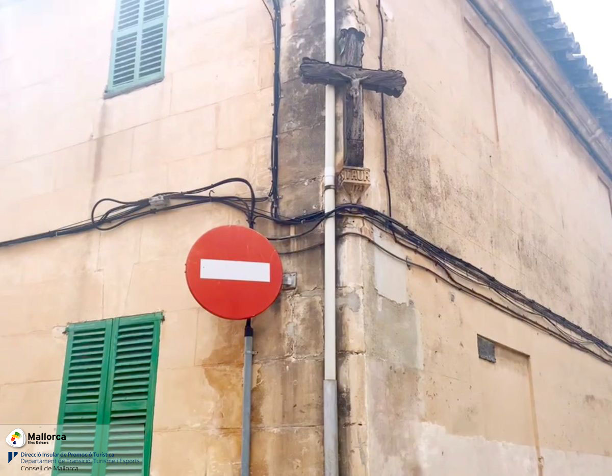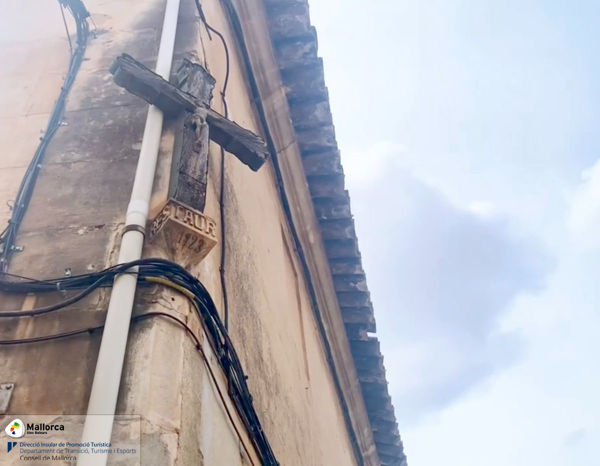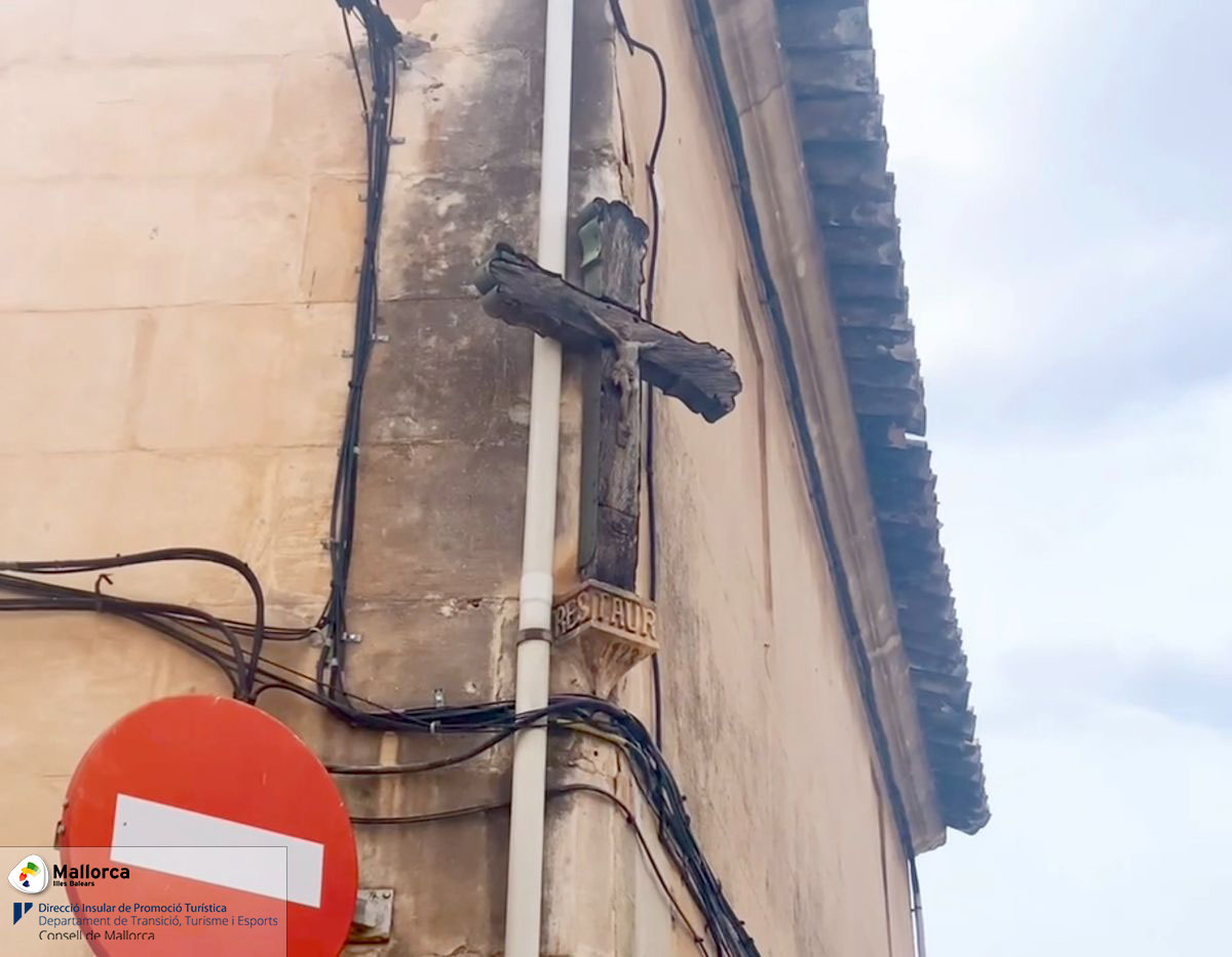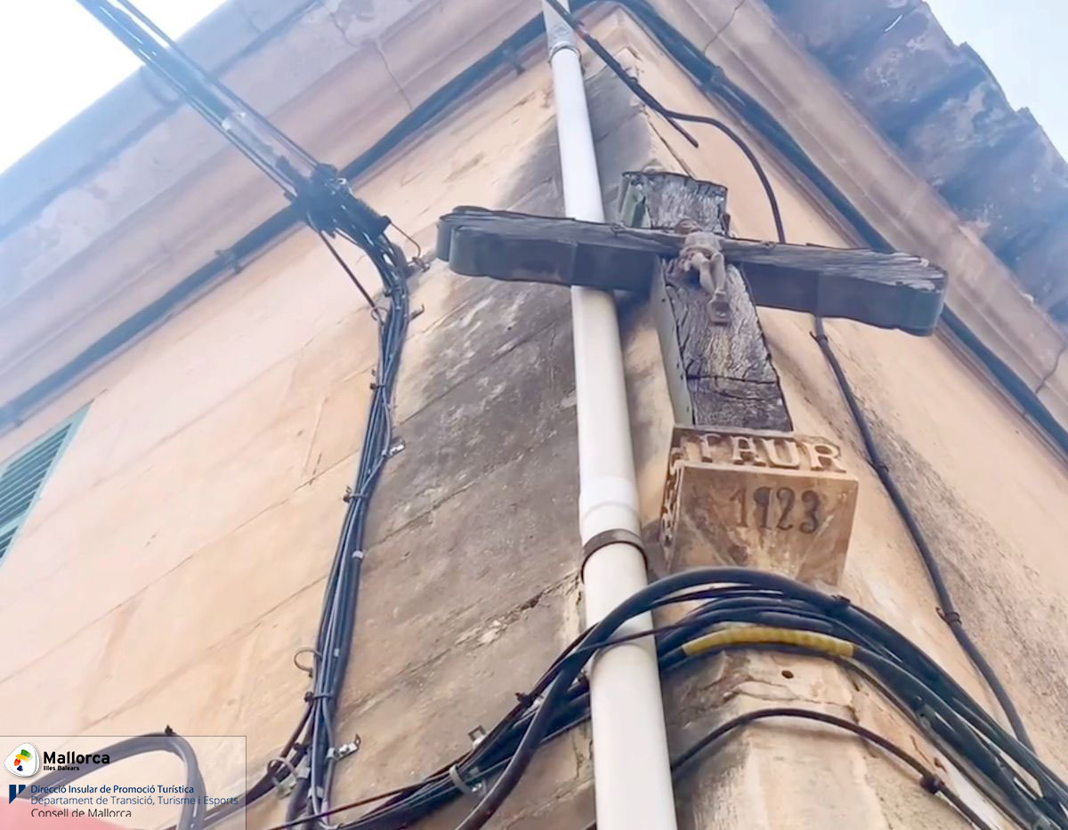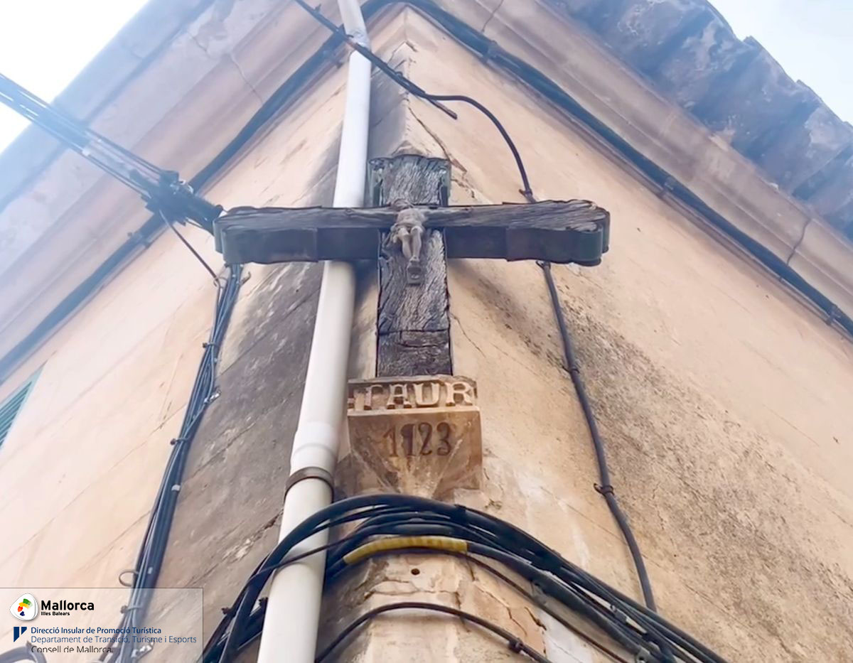 Antigament ubicada al camí de sa Pobla a Ciutat. La primera creu de pedra fou construïda cap a l’any 1500. El 1851 sobre l’antic sòcol es va construir una altra creu de fusta, que va durar poc temps. El 1923 la creu, construïda de bell nou,es col·locà al carrer Major, amb un santcrist de metall. Davant d’aquesta creu, amb motiu de la festa de la Santa Creu, antigament es beneïen els cultius que els pagesos de sa Pobla recollien a sa Marjal.