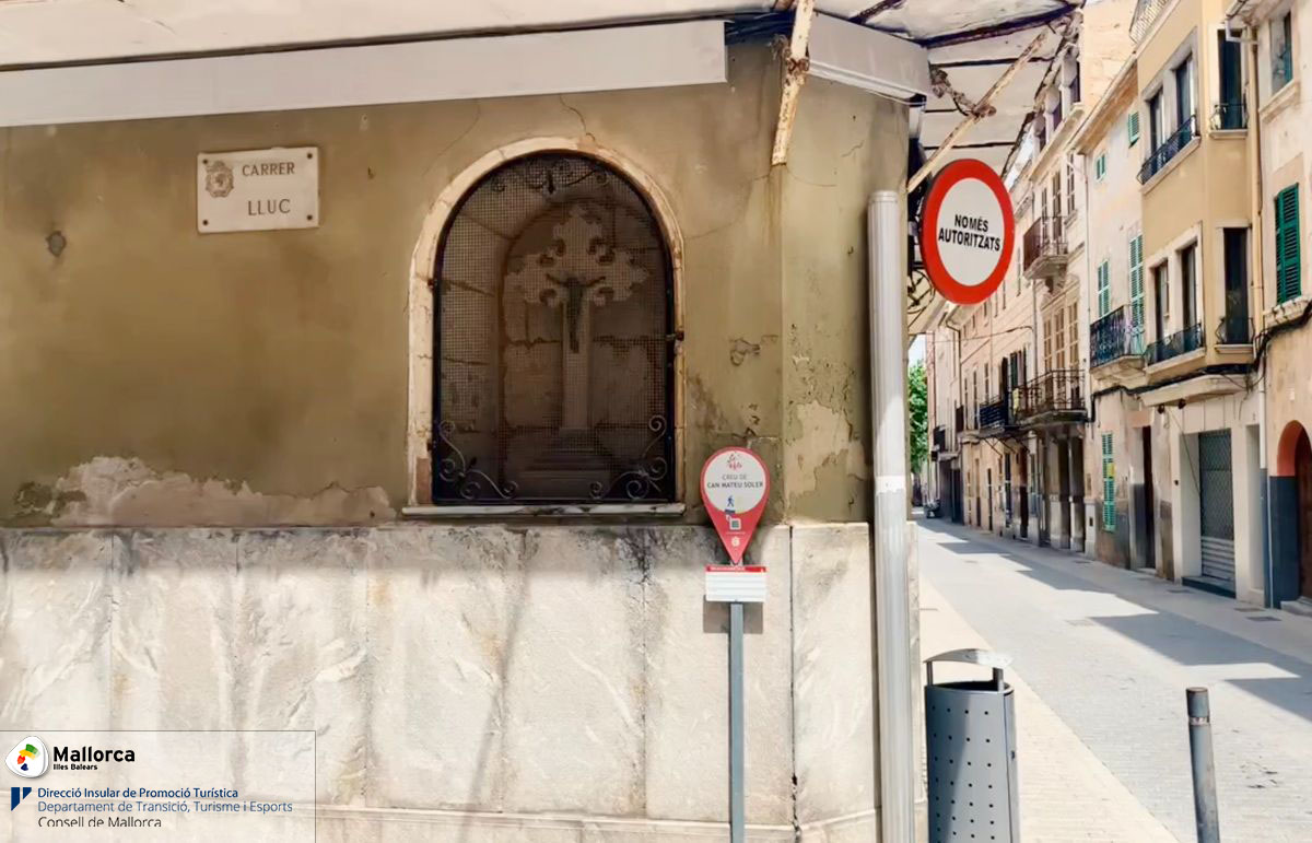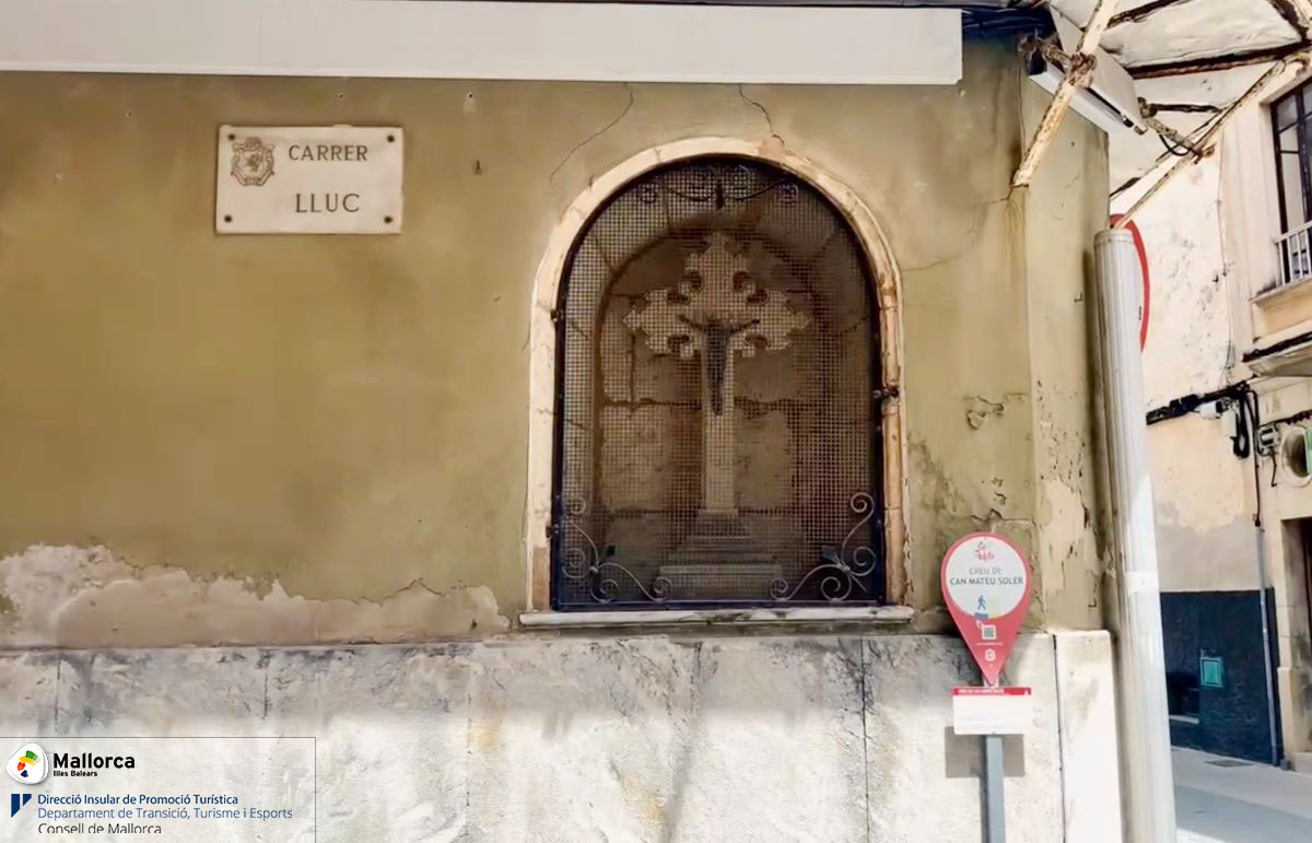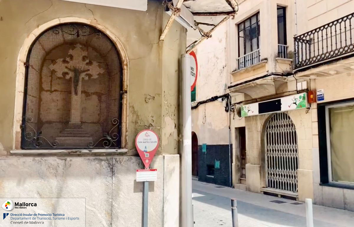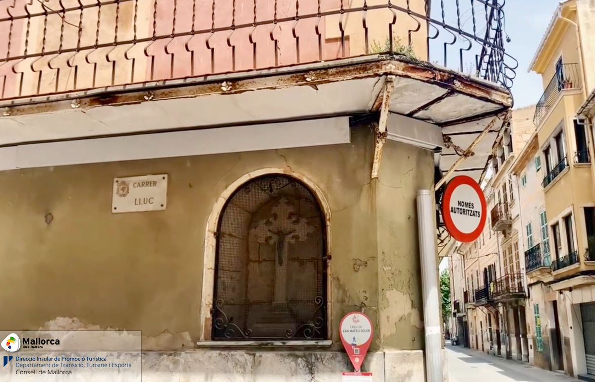 Im Jahr 1907 entdeckte der Besitzer des Hauses Mateu Soler bei Renovierungsarbeiten eine Nische in der Wand und beauftragte den Schmied Joan Gelabert mit der Anfertigung eines Kreuzes, das er in die Nische setzte. Das Kreuz ist im neugotischen Stil gehalten und trägt die Jahreszahl 1922. Es hat einen Metall-Christus. Die Neogotik wollte Ende des 19. Jahrhunderts die mittelalterliche gotische Kunst wiederbeleben.